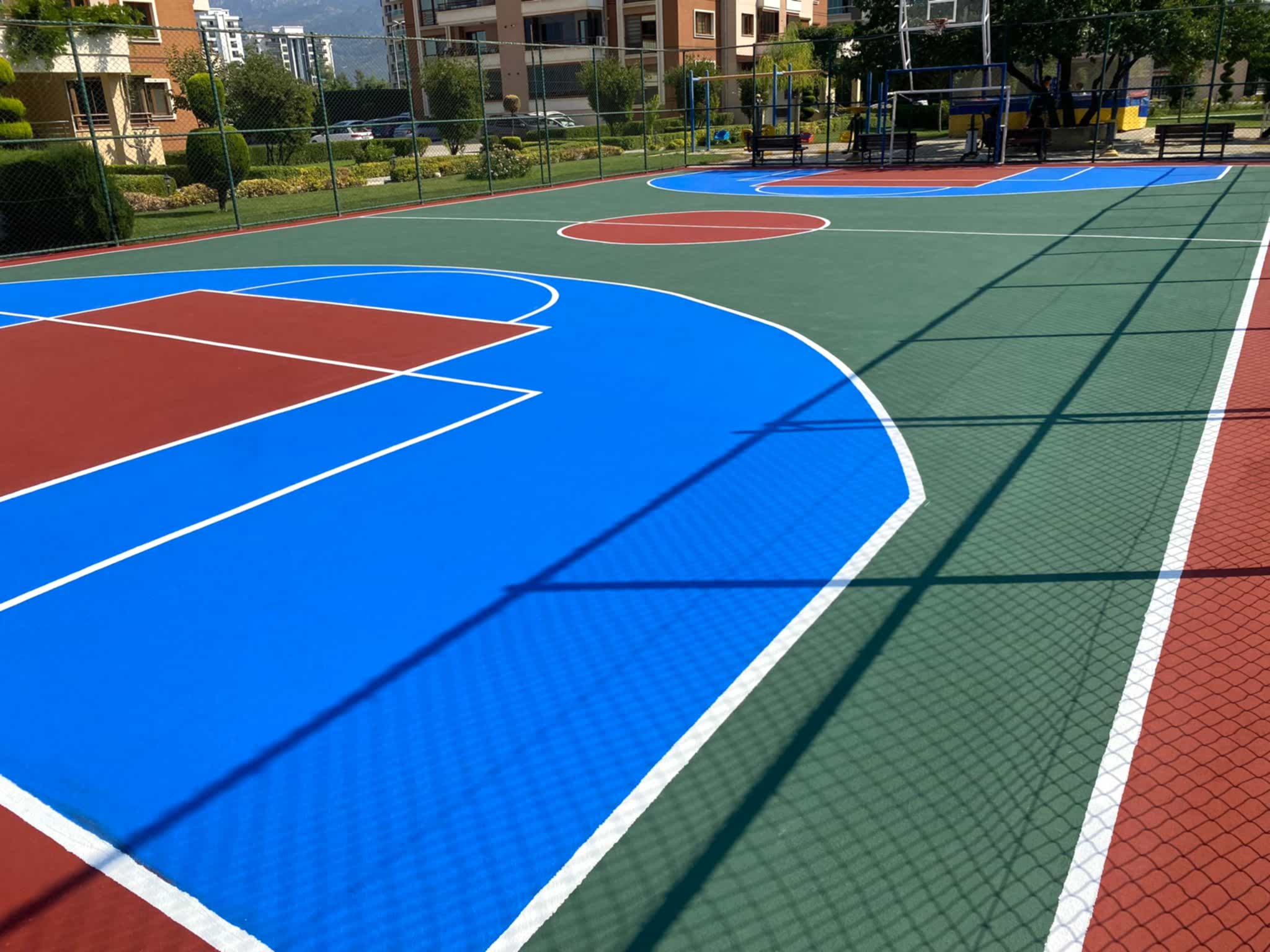 Azerbaycan'da spor sahaları için özel olarak tasarlanmış zemin kaplamaları su bazlı akrilik reçine ve sentetiklerle güçlendirilmiştir. Sağlıklı bir uygulama için zeminin sıfır asfalt olması önemlidir. Kortun zeminden tasarlanıp projede size teslim edilir. Akrilik zemin katmanları belirli bir sıra izlenerek uygulanır.